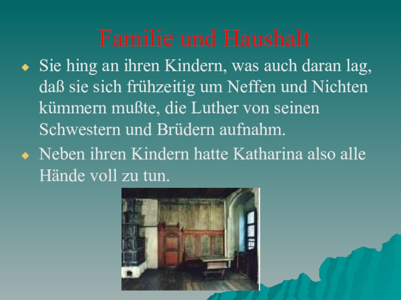 Sicher ist, daß Luther, der von Frauen im öffentlichen Leben nichts wissen wollte, ihre Führungsfunktion im Haus hoch achtete.
