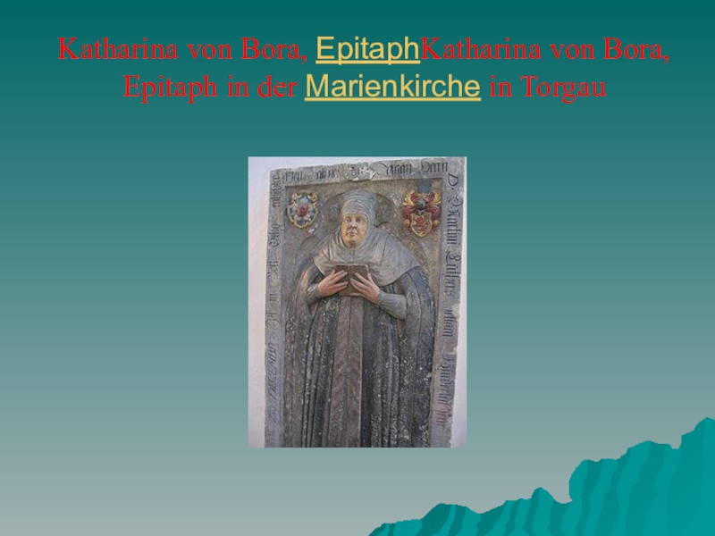 Слайд 19Katharina von Bora, EpitaphKatharina von Bora, Epitaph in der Marienkirche in