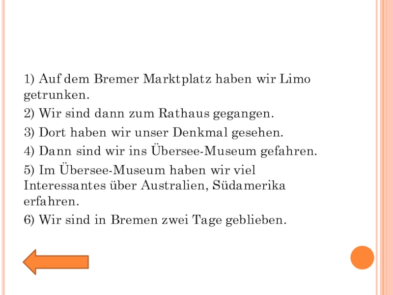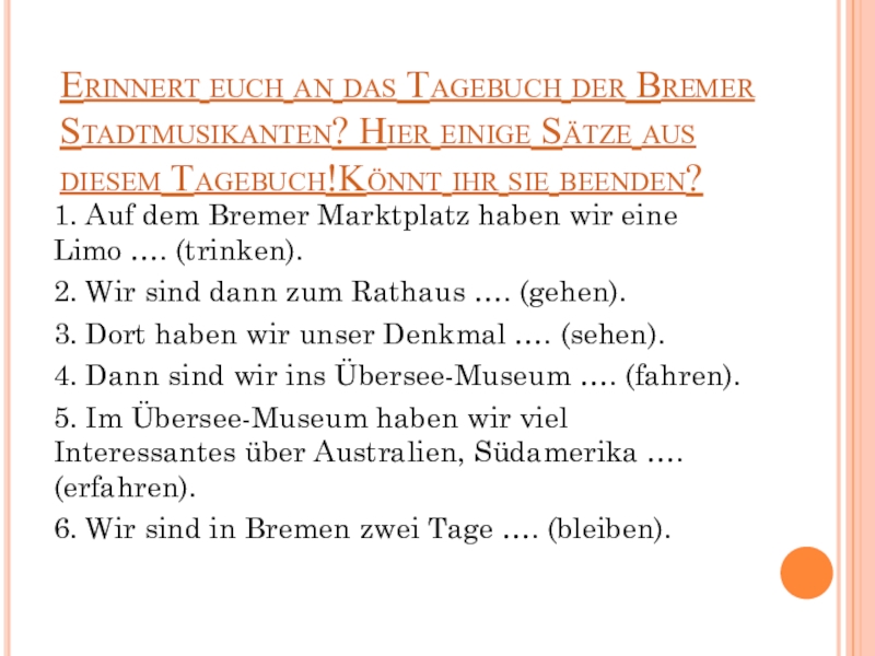 1. Auf dem Bremer Marktplatz haben wir eine Limo …. (trinken).