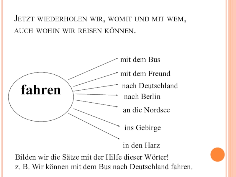 z. B. Wir können mit dem Bus nach Deutschland fahren.