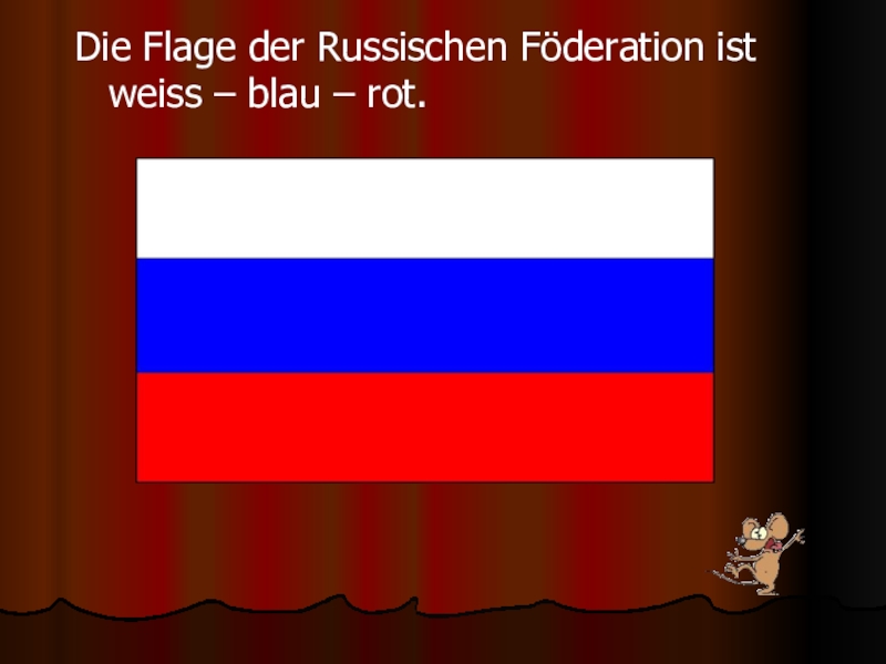 Слайд 4Die Flage der Russischen Föderation ist weiss – blau – rot.