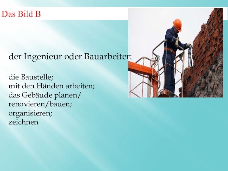 Das Bild Bder Ingenieur oder Bauarbeiter: die Baustelle; mit den Händen arbeiten; das Gebäude planen/renovieren/bauen; organisieren; zeichnen