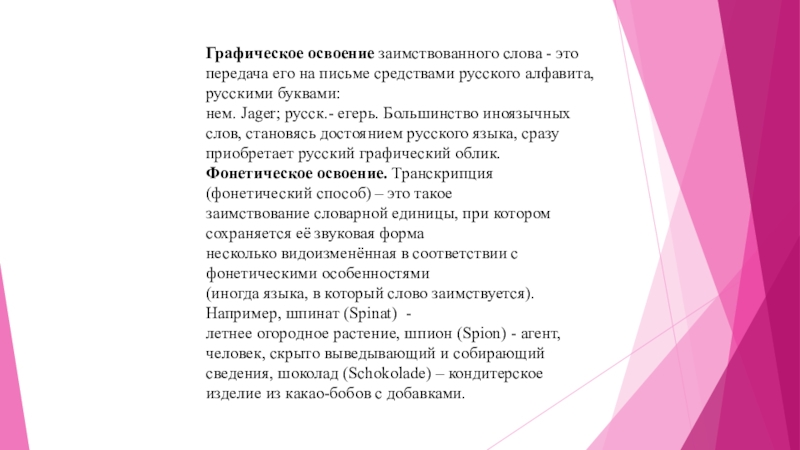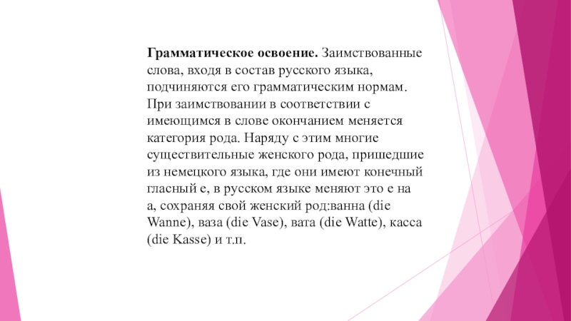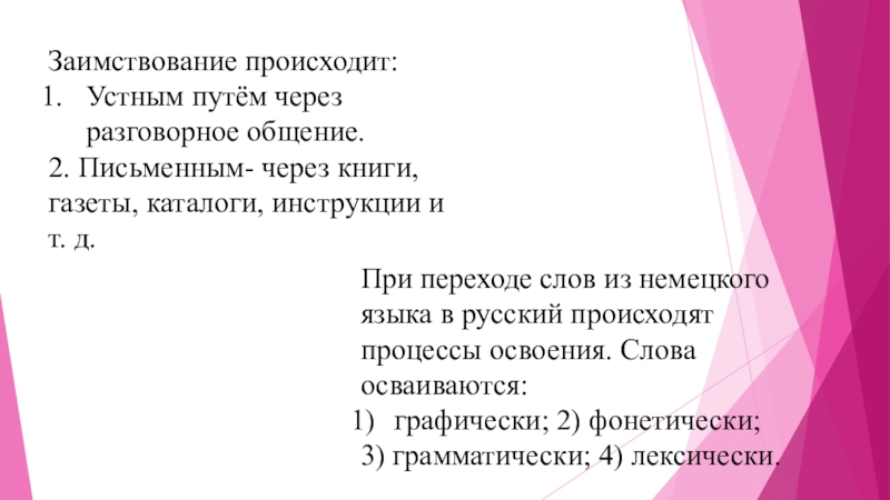 При переходе слов из немецкого языка в русский происходят процессы освоения. Слова осваиваются: