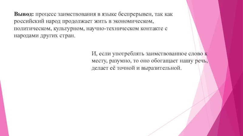 И, если употреблять заимствованное слово к месту, разумно, то оно обогащает нашу речь, делает её точной и выразительной.