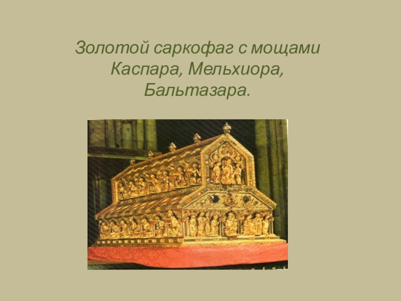 Слайд 13Золотой саркофаг с мощами Каспара, Мельхиора, Бальтазара.