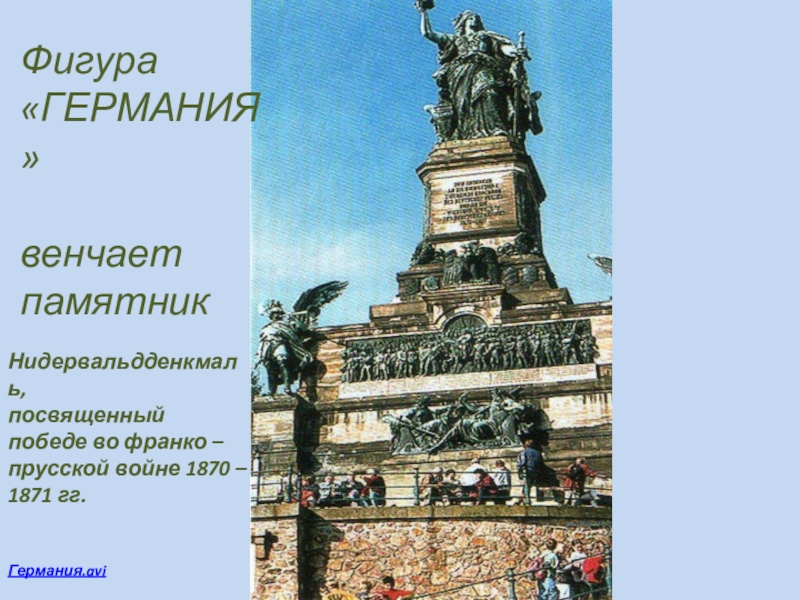 Фигура «ГЕРМАНИЯ»венчает памятник Нидервальдденкмаль,посвященный победе во франко – прусской войне 1870 – 1871 гг.Германия.avi