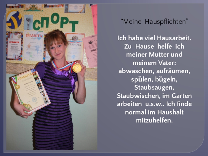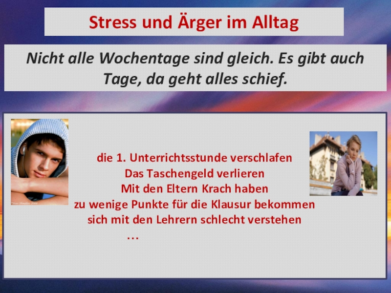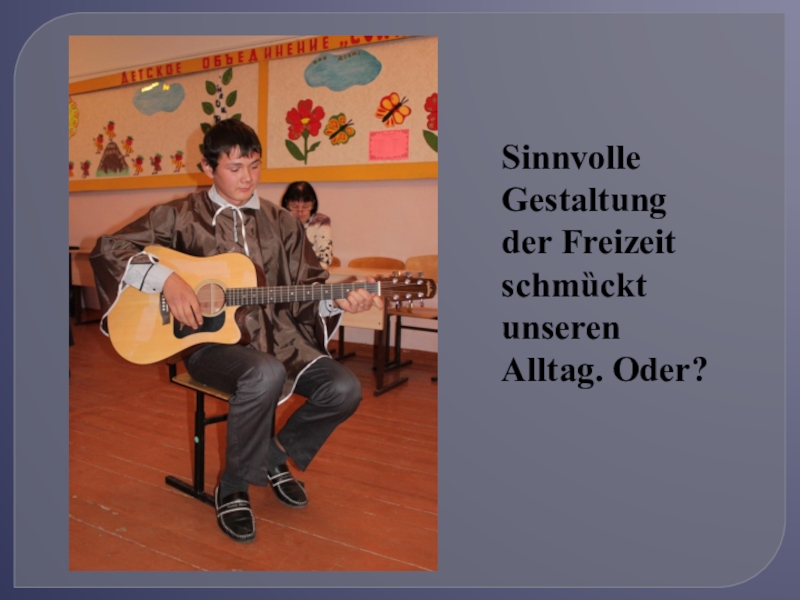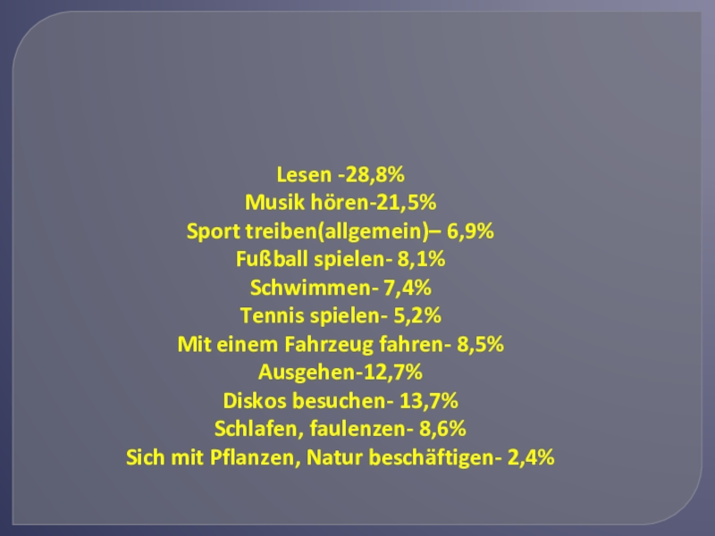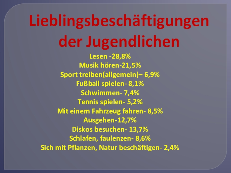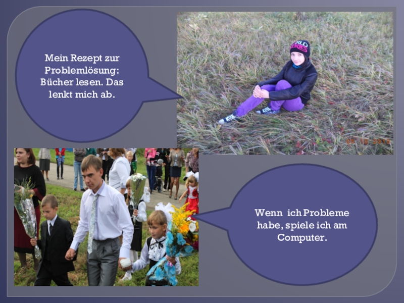 Rad fahren, sich mit den Freunden treffen, AG besuchen.