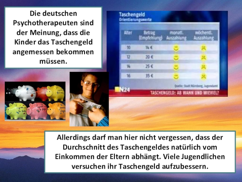 Allerdings darf man hier nicht vergessen, dass der Durchschnitt des Taschengeldes natürlich vom Einkommen der Eltern abhängt. Viele Jugendlichen versuchen ihr Taschengeld aufzubessern.