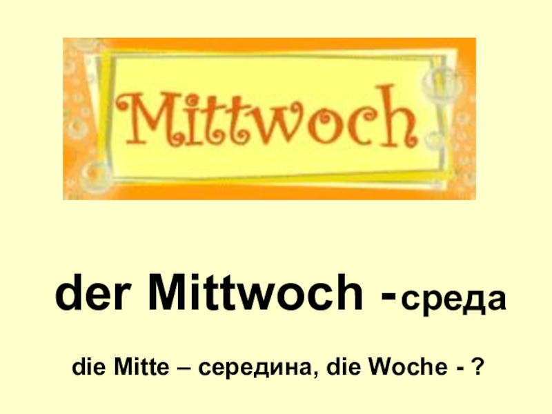 der Mittwoch - средаdie Mitte – середина, die Woche - ?