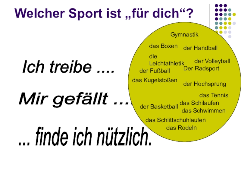 Welcher Sport ist „für dich“? Ich treibe .... Mir gefällt .... ... finde ich nützlich.