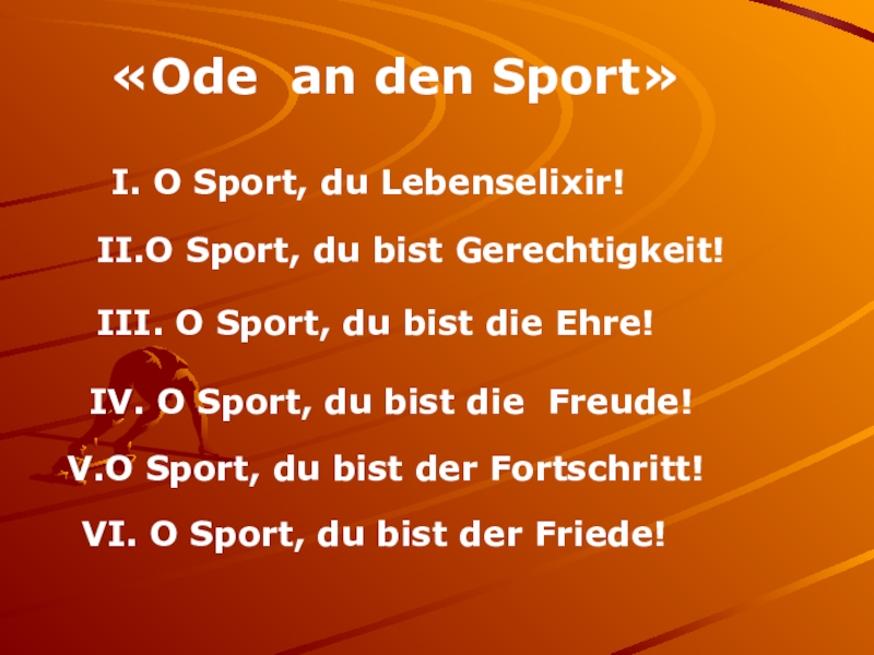 IV. O Sport, du bist die Freude!