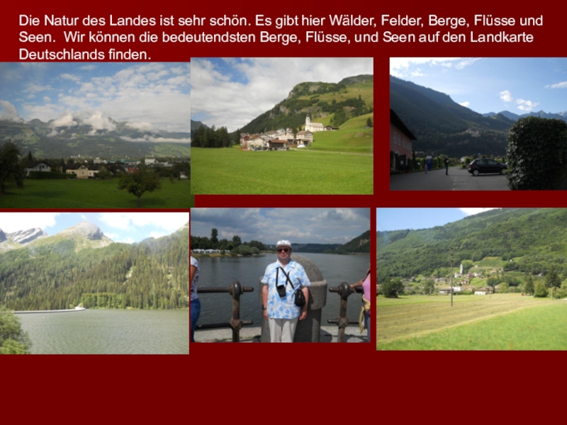 Wälder, Felder, Berge, Flusse und Seen sehen.
