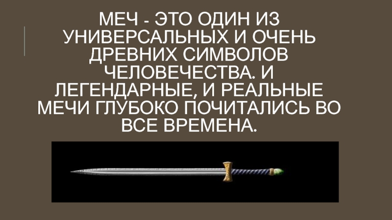 Слайд 12Меч - это один из универсальных и очень древних символов человечества.