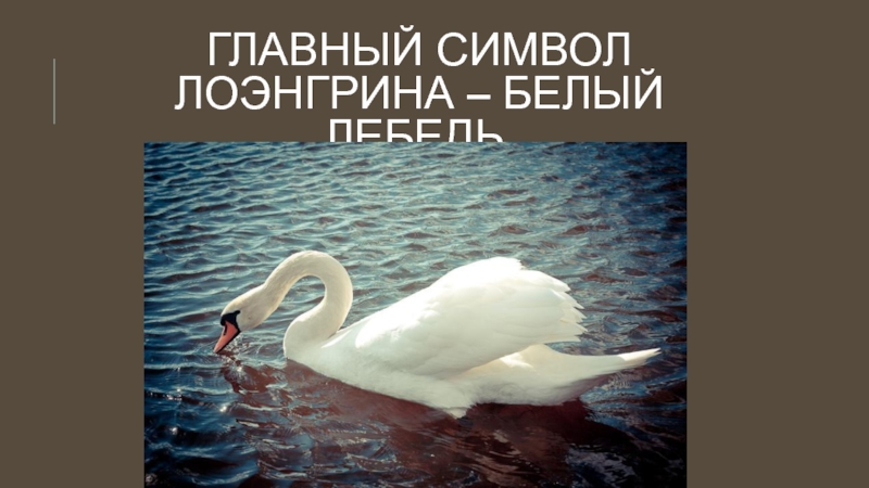 Слайд 11Главный символ Лоэнгрина – Белый Лебедь.