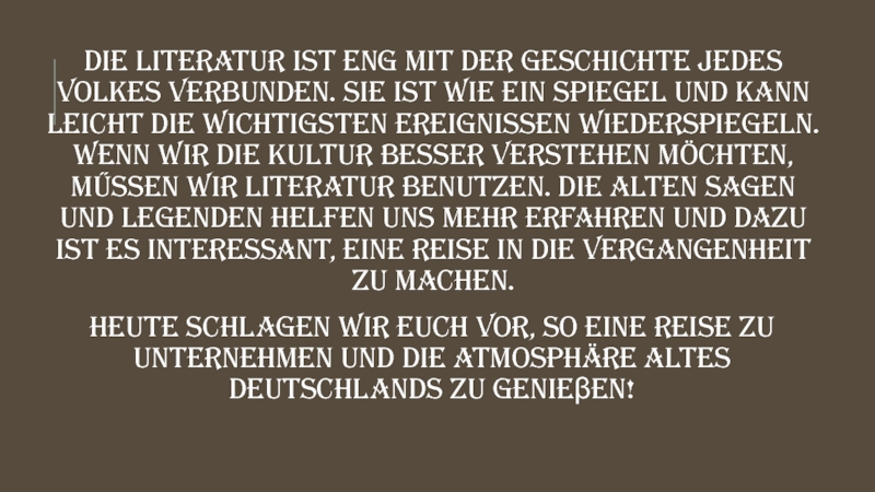 Презентация, доклад по немецкому языку Путешествие в мир немецких легенд и сказаний
