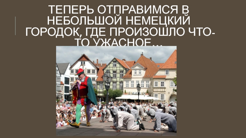 Слайд 17Теперь отправимся в небольшой немецкий городок, где произошло что-то ужасное…