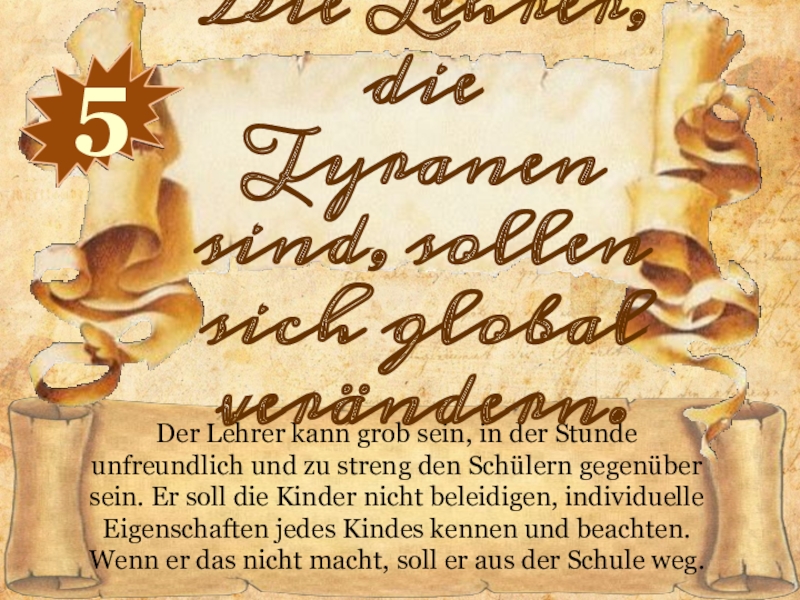 Die Lehrer, die Tyranen sind, sollen sich global verändern.