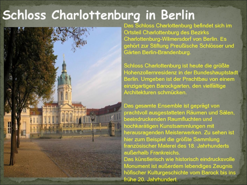 Charlottenburg des Bezirks Charlottenburg-Wilmersdorf von Berlin. Es gehört zur Stiftung Preußische Schlösser und Gärten Berlin-Brandenburg.