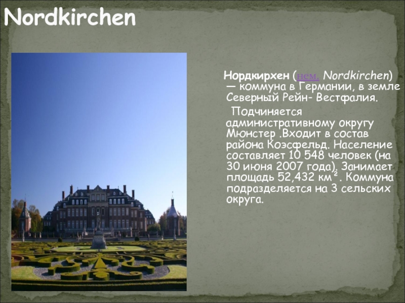 Нордкирхен (нем. Nordkirchen) — коммуна в Германии,