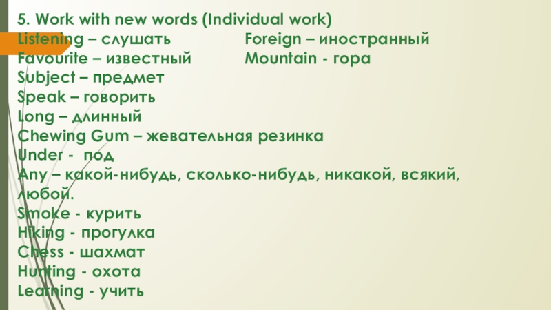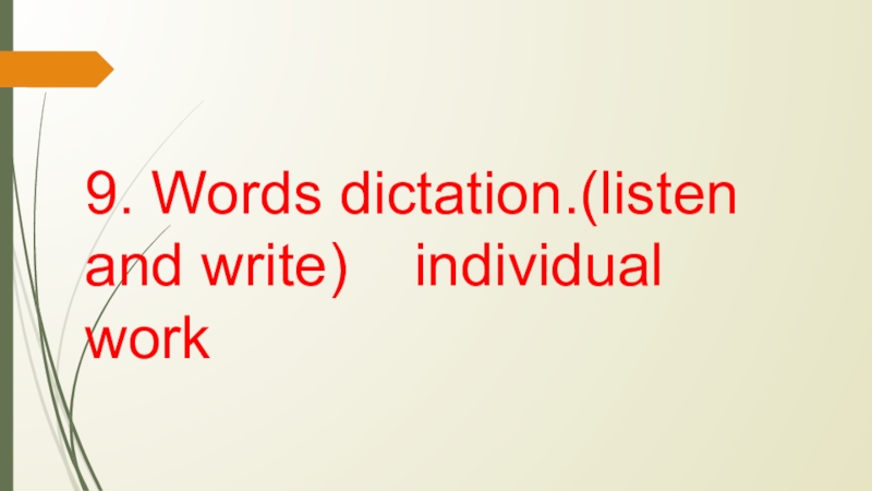 9. Words dictation.(listen and write) individual work . 5 min 5 balls
