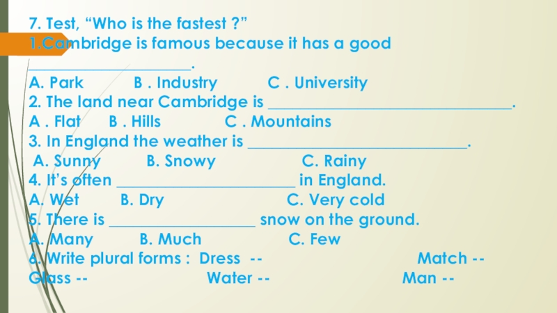 6. Test, “Who is the fastest ?” 4 min 6 balls