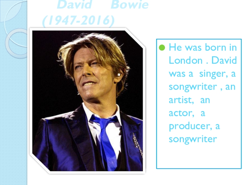 in London . David was a singer, a songwriter , an artist, an actor, a producer, a songwriter