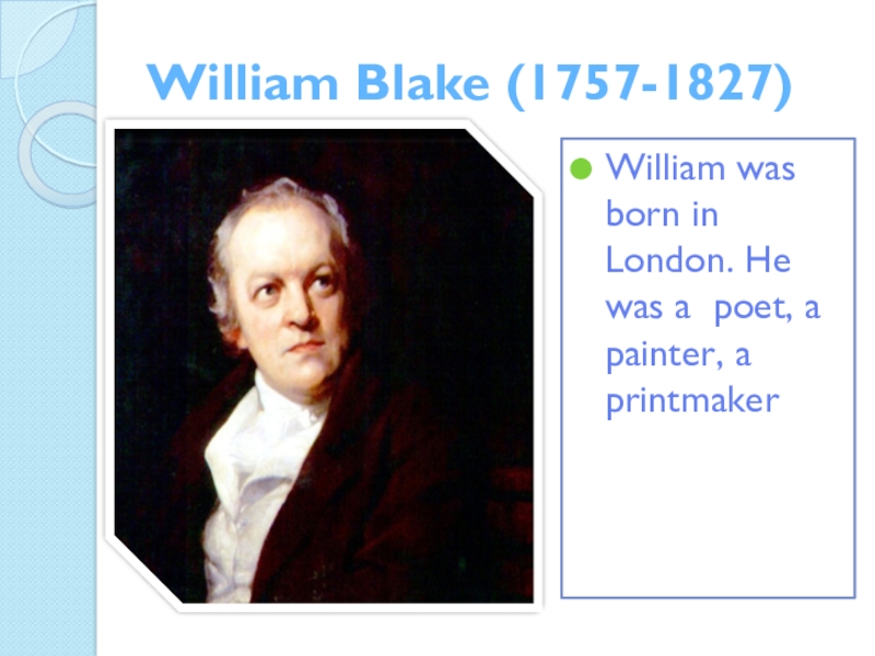 William Blake (1757-1827)William was born in London. He was a poet, a painter, a printmaker