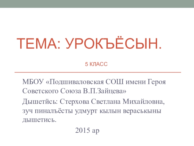 Дышетӥсь: Стерхова Светлана Михайловна, зуч пиналъёсты удмурт кылын вераськыны дышетись.