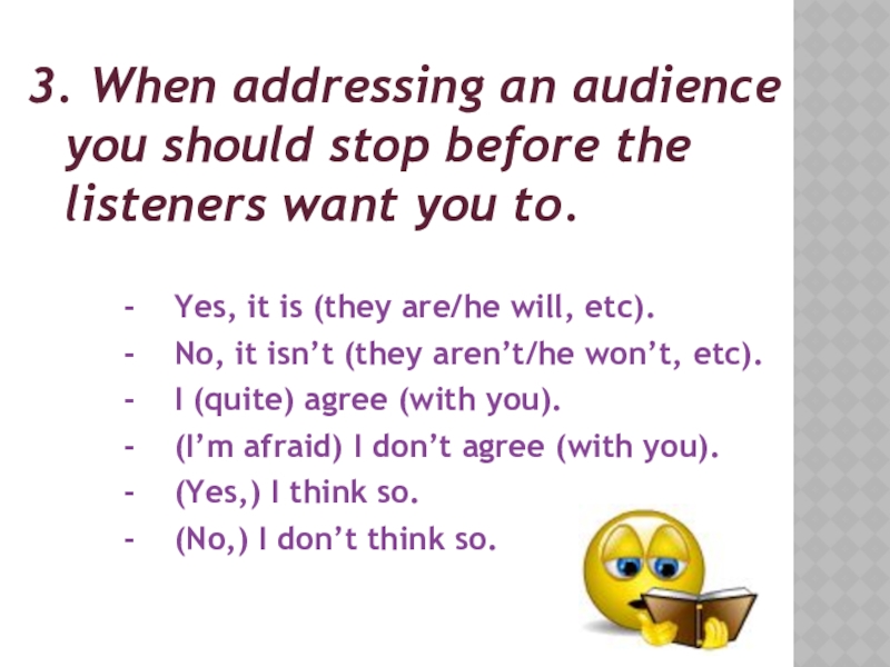 Слайд 10AGREE OR DISAGREE WITH THE STATEMENTS. USE THE FOLLOWING: