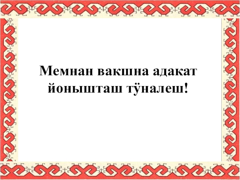 Слайд 14Мемнан вакшна адакат йонышташ тÿналеш!