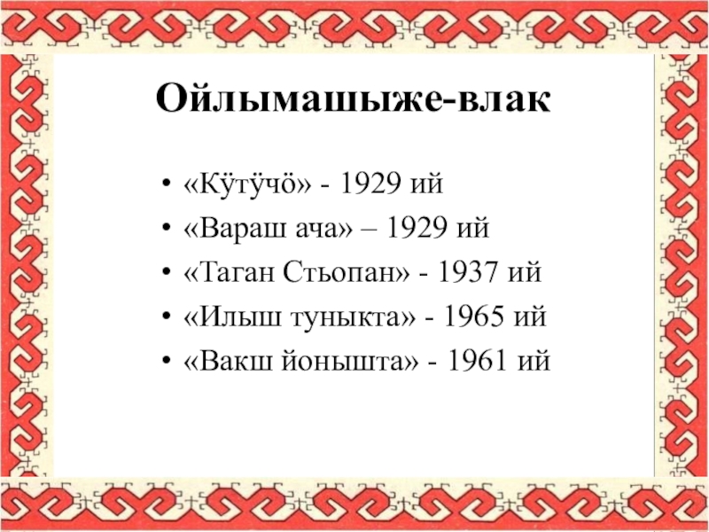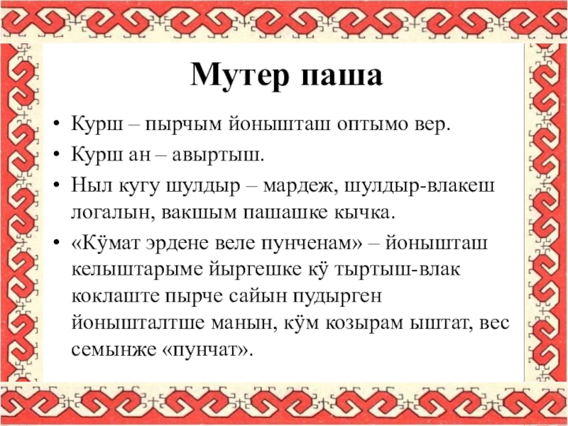 Презентация, доклад по родной литературе Чын лум пашаште шочеш