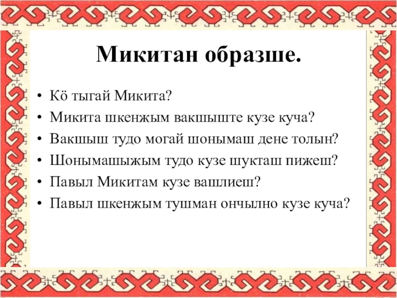 Микитан образше.Кö тыгай Микита?Микита шкенжым вакшыште кузе куча?Вакшыш тудо могай шонымаш дене толын?Шонымашыжым тудо кузе шукташ пижеш?Павыл