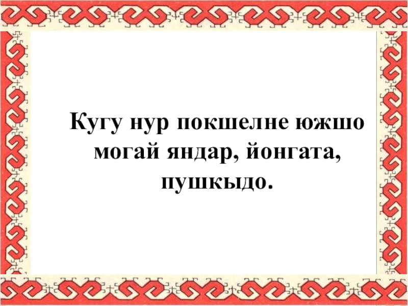 Слайд 12Кугу нур покшелне южшо могай яндар, йонгата, пушкыдо.