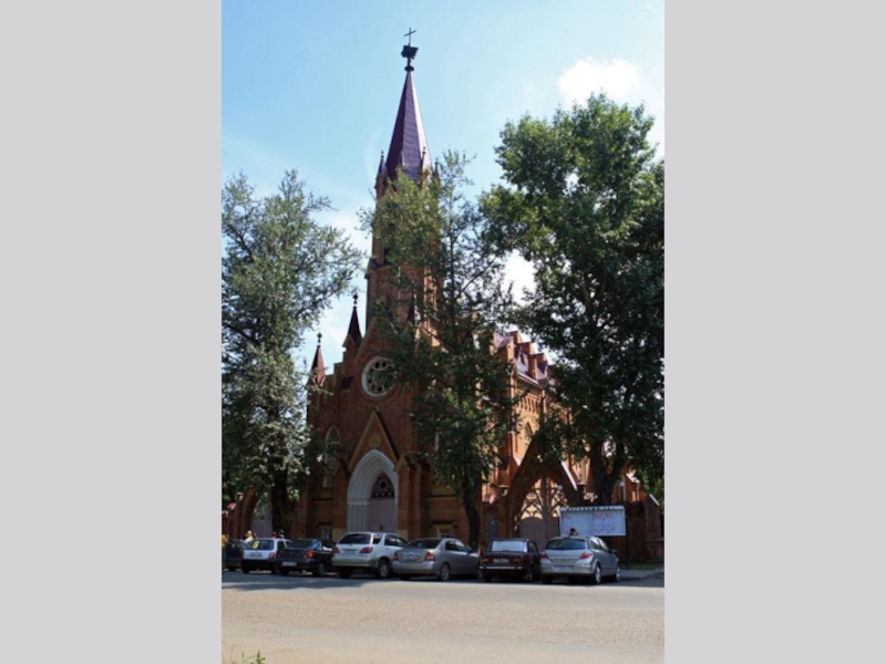 Слайд 4В районе площади Кирова находится католический костёл, построенный в