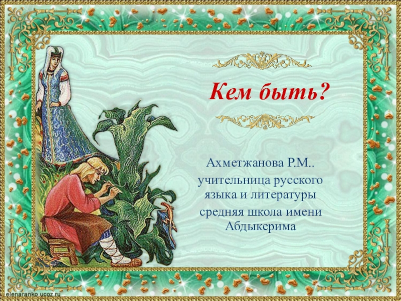 Кем быть?Ахметжанова Р.М..учительница русского языка и литературы средняя школа имени Абдыкерима