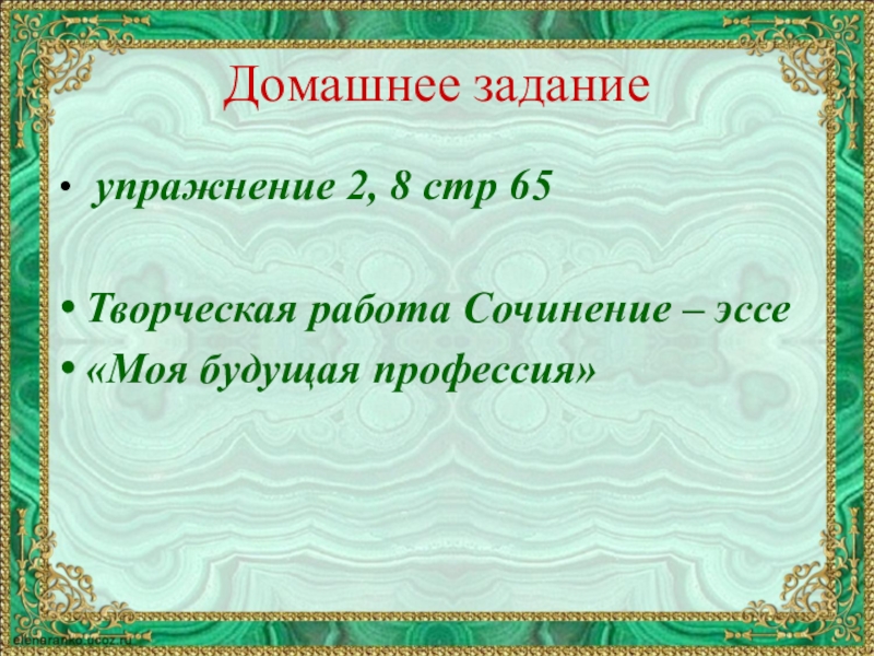 Домашнее задание упражнение 2, 8 стр 65 Творческая работа Сочинение – эссе «Моя будущая профессия»