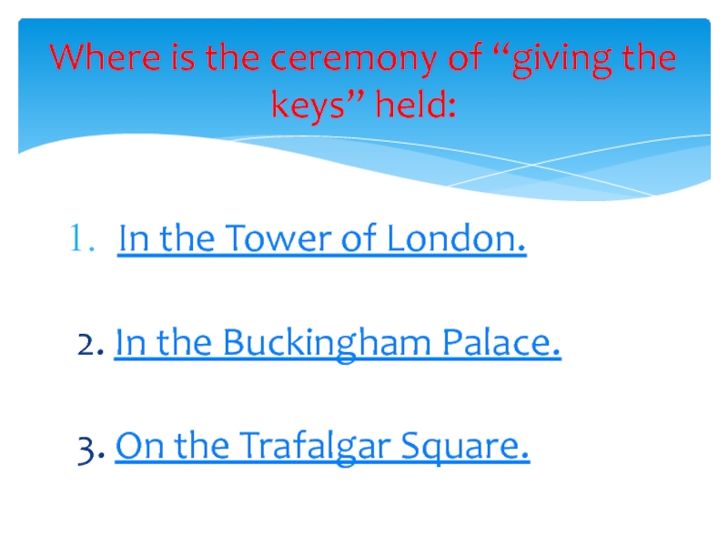 Where is the ceremony of “giving the keys” held: