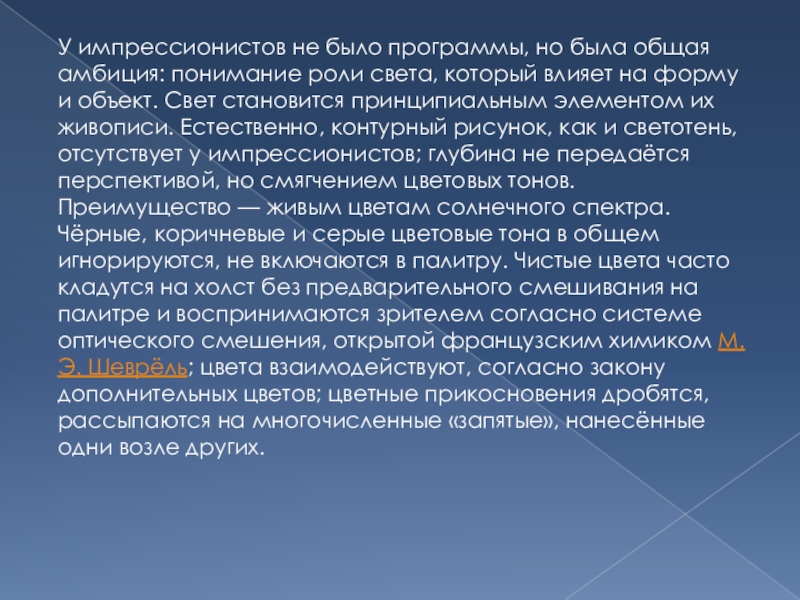 Слайд 9У импрессионистов не было программы, но была общая амбиция: понимание роли