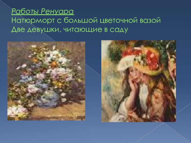 Жанны Самари», «Мадам Жорж Шарпантье с детьми», «Девочка с лейкой», «Девушки в черном»), с обнаженной натурой («Обнаженная»), где так же достиг необычайной славы, благодаря завораживающему колориту, тонкому психологизму и особому ощущению важности момента, сиюминутности, присущей его портретам.