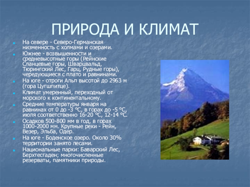 На юге - отроги Альп высотой до 2963 м (гора Цугшпитце).