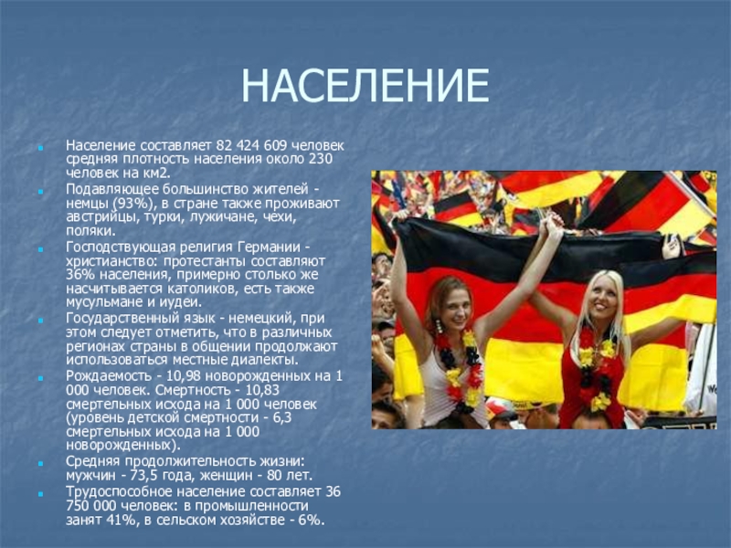 Население составляет 82 424 609 человек средняя плотность населения около 230