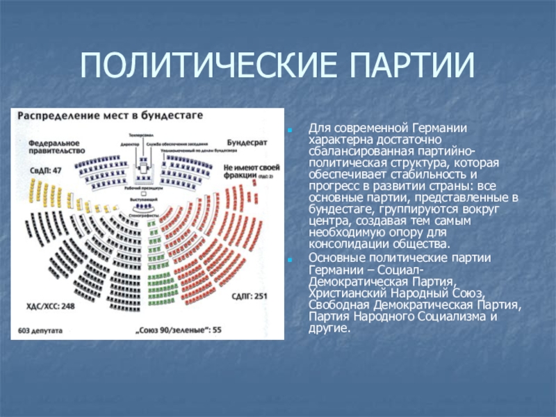Для современной Германии характерна достаточно сбалансированная партийно-политическая структура, которая обеспечивает