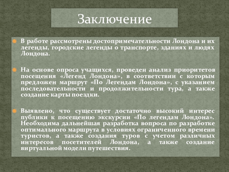 3. Разработать и составить маршрут, в соответствии с легендами города, рекомендуемого для знакомства с историей Лондона и его достопримечательностями.