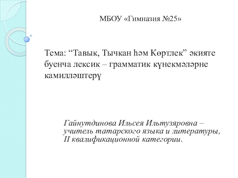 Тема: “Тавык, Тычкан һәм Көртлек” әкияте буенча лексик – грамматик күнекмәләрне камилләштерү