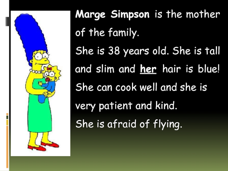 Слайд 18Marge Simpson is the mother of the family.