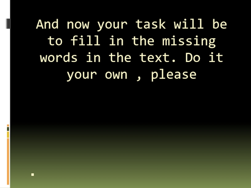 Слайд 19And now your task will be to fill in the missing