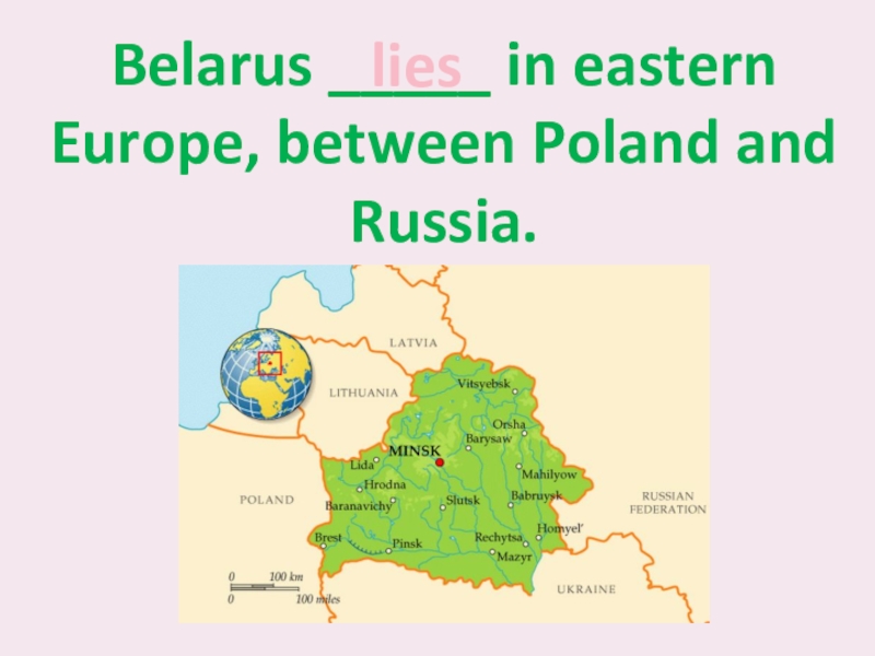 Слайд 2Belarus _____ in eastern Europe, between Poland and Russia.
