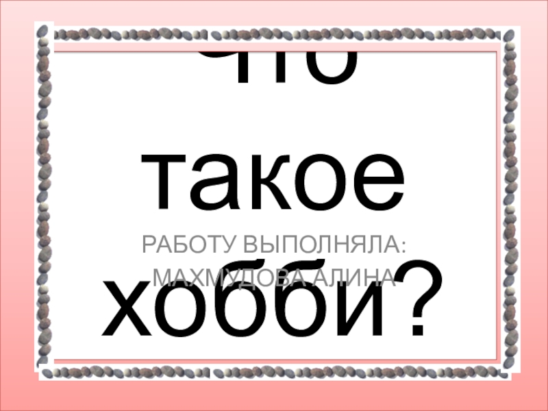 Что такое хобби?РАБОТУ ВЫПОЛНЯЛА:МАХМУДОВА АЛИНА