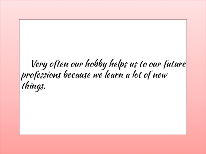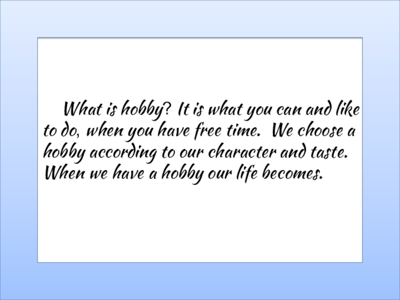 do, when you have free time. We choose a hobby according to our character and taste. When we have a hobby our life becomes.