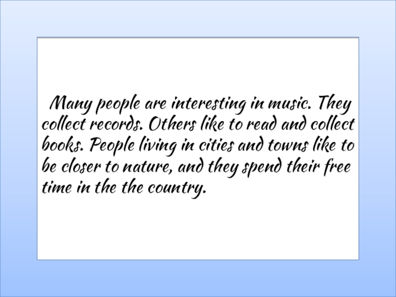 Слайд 6Many people are interesting in music. They collect records. Others like